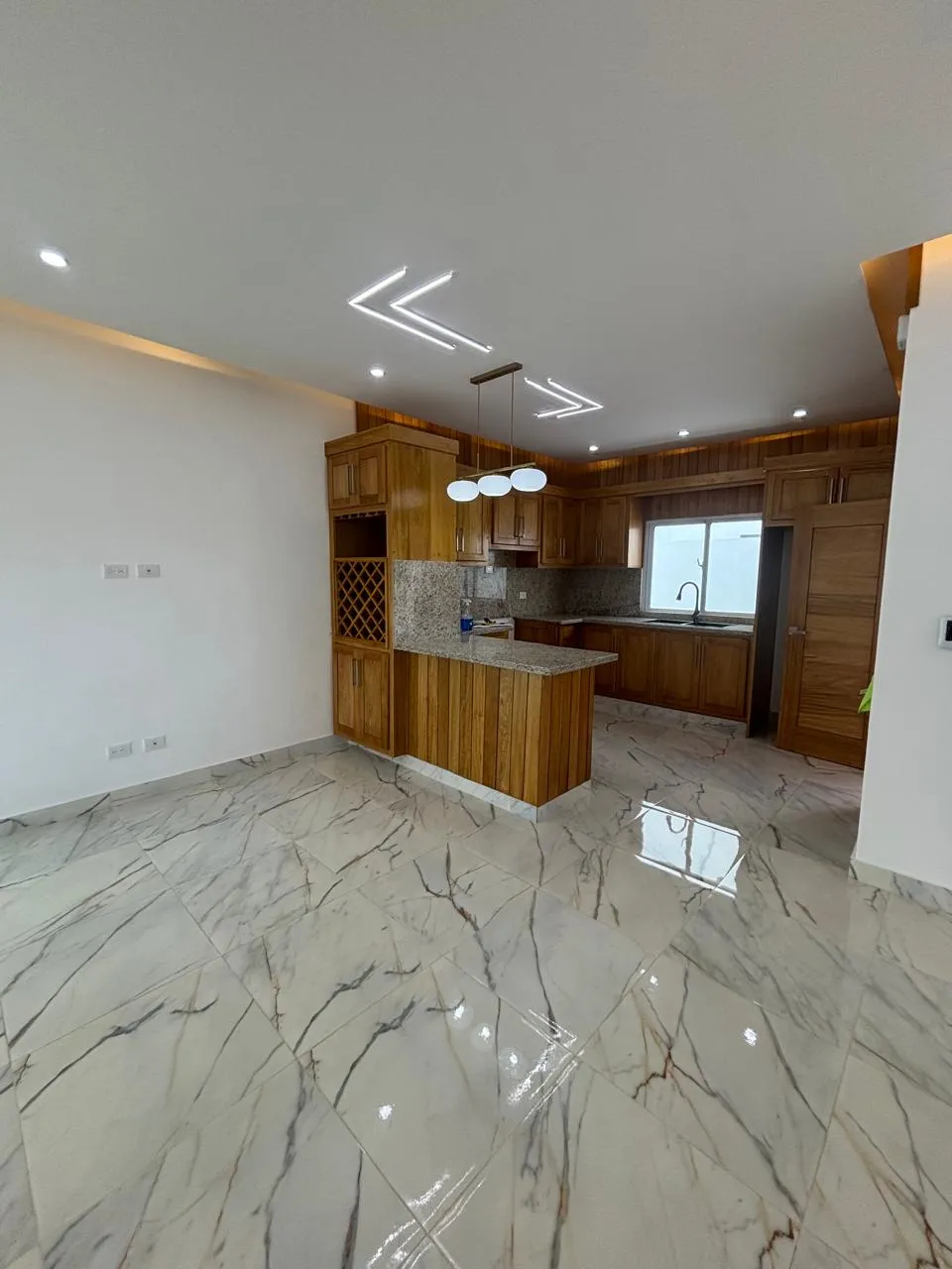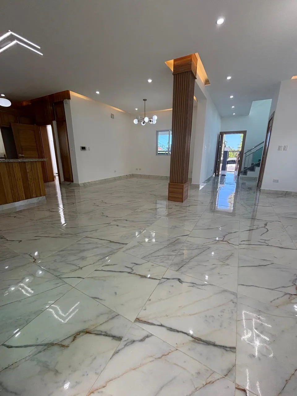 – Sala,Comedor,Cocina, Habitación de servicio con su baño ,Terraza, Area de lavado cerrada ,1/2 baño,Jardín amplio , Marquesina Doble.
