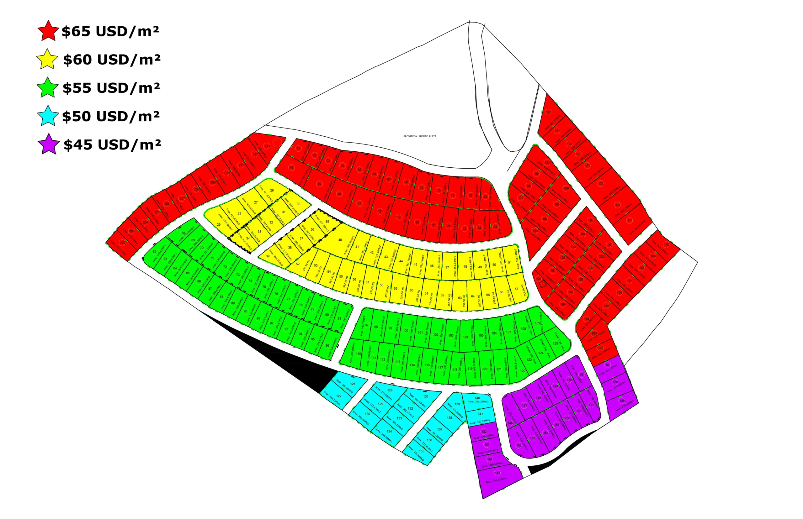 Diamante: 65 USD/m² – Las mejores vistas del proyecto.